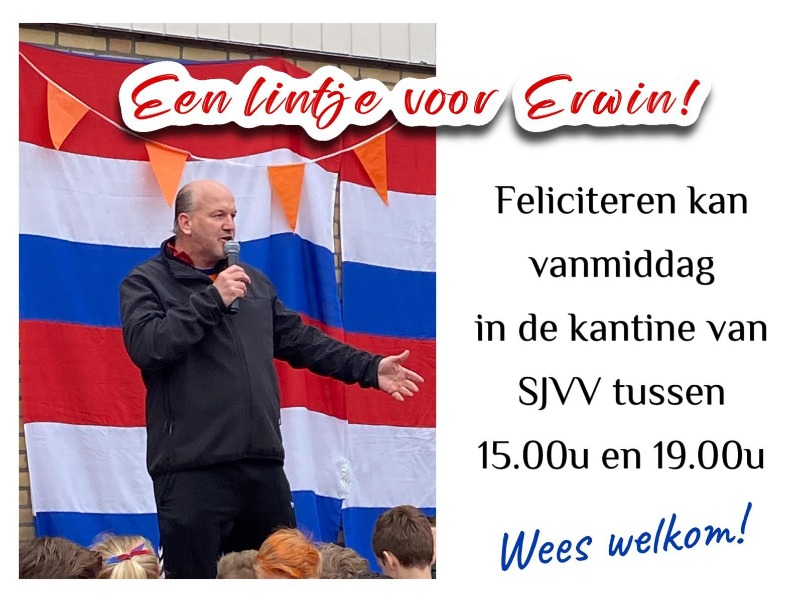 Hij verdient dus deze erkenning en wil je hem komen feliciteren dan kan dat vanmiddag vanaf 15.00 in onze kantine! IEDEREEN (familie, vrienden, (jeugd)voetballers, niet voetballers, collega's, kinderen) is welkom om te komen proosten op hem!