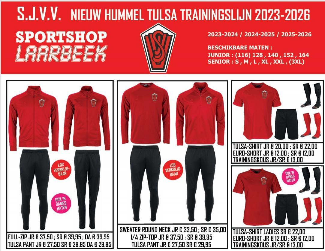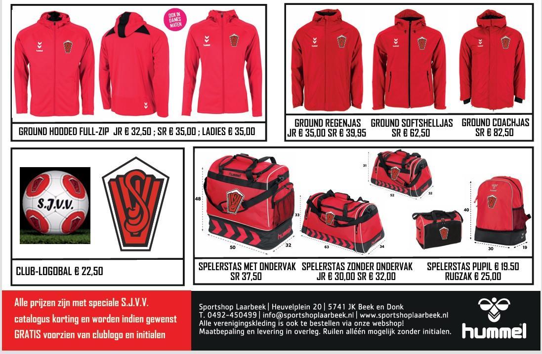 De verkoop van sportkleding en tassen verloopt ook dit seizoen via de website van Sportshop Laarbeek, waar u de prijzen met korting bij de artikelen ziet staan. Alle prijzen zijn met speciale SJVV cataloguskorting en wordt indien gewenst voorzien van gratis clublogo en initialen.