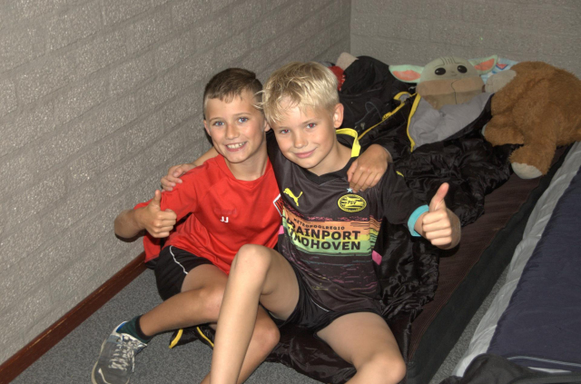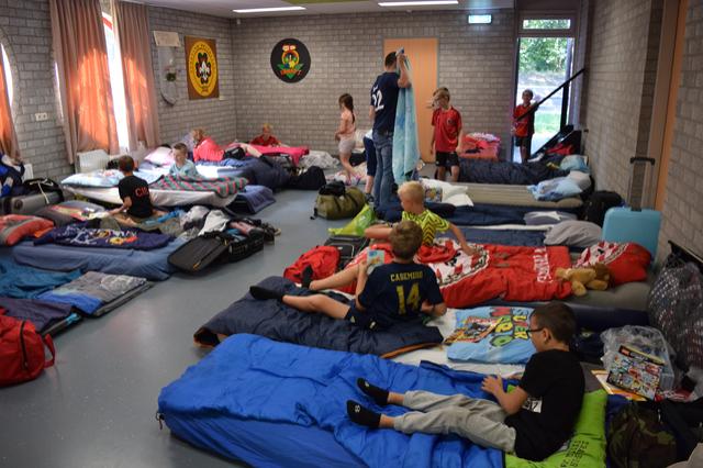 De kinderen werden door de ouders gebracht in Wellerlooi. Een mooi slaapplekje inrichten en nog snel een knuffel. Het jeugdkamp kan beginnen!