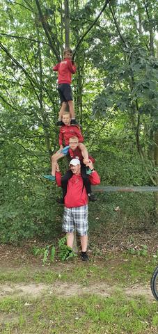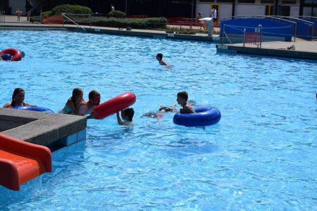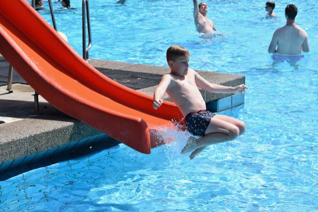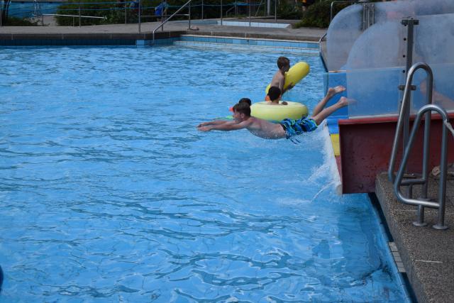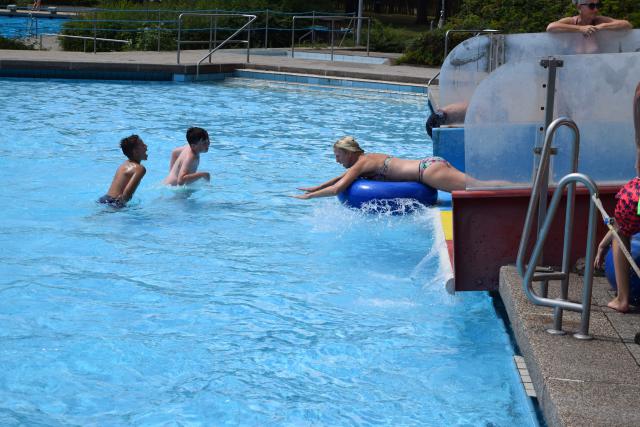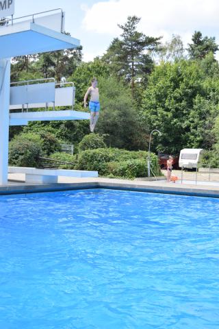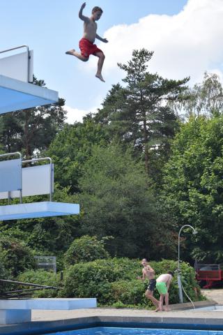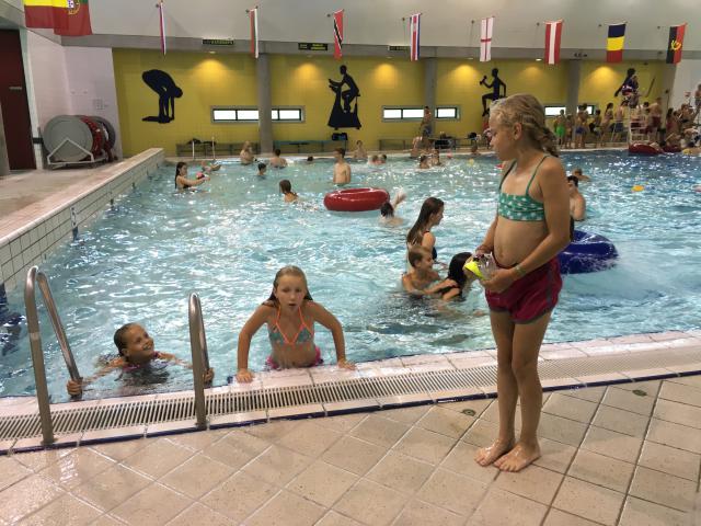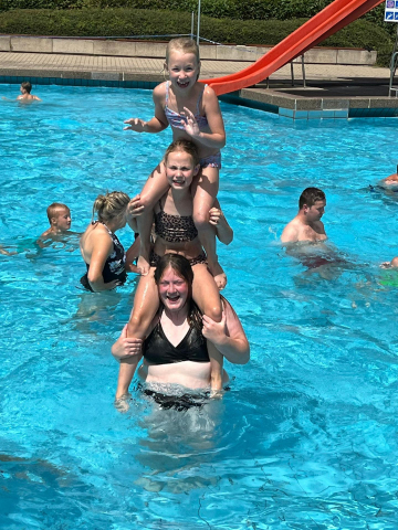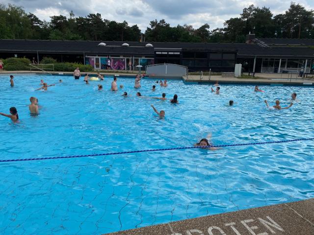 Tijdens de een na laatste dag van het jeugdkamp gingen we lekker zwemmen in Walbeck net over de grens in Duitsland. Na een mooie fietstocht waren we klaar voor een frisse duik. Het waldfreibad is een mooi zwembad met een paar kleine glijbanen, een duiktoren, een wedstrijdbad en een enorm speelterrein. Onze jongens en meiden konden zich hier heerlijk vermaken.