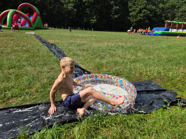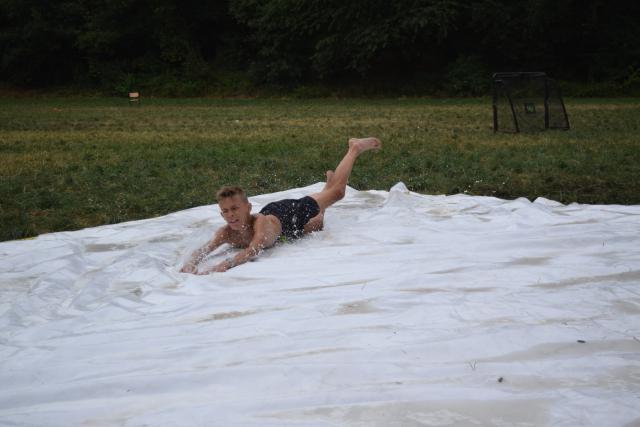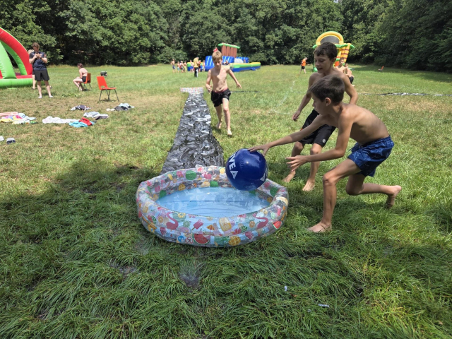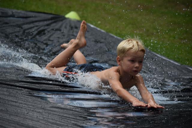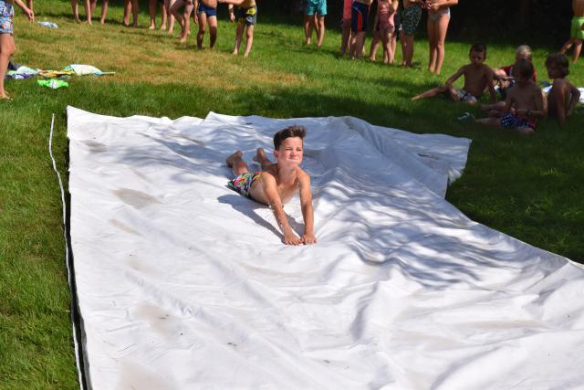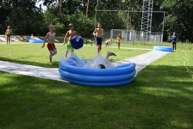 Vanochtend hadden we ontbijt. Toen gingen we ons voorbereiden op de tienkamp. Dit waren allemaal leuke (water)spellen. Voor het middageten hadden we vijf spellen. Dit waren de 60m sprint, vakschieten, adem inhouden, kaartje leggen en gewichtheffen. Daarna hadden we lunch, en toen hadden we nog vier spellen. Dat waren paintball schieten, ingooien, hindernisroute met spons en  voetgolf. We vonden het hele leuke spellen. Na de spellen hadden we even vrije tijd en konden we met het water kloten. En toen gingen we nog buikschuiven. Daarna ging iedereen douchen en klaarmaken voor het eten. Na het eten hebben we dit verslag geschreven.