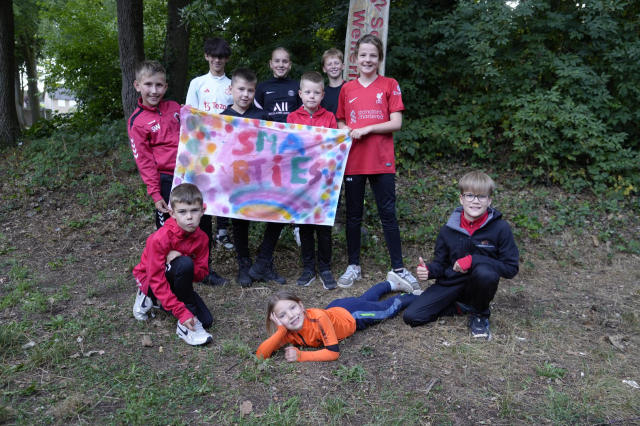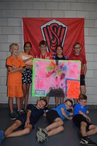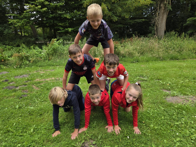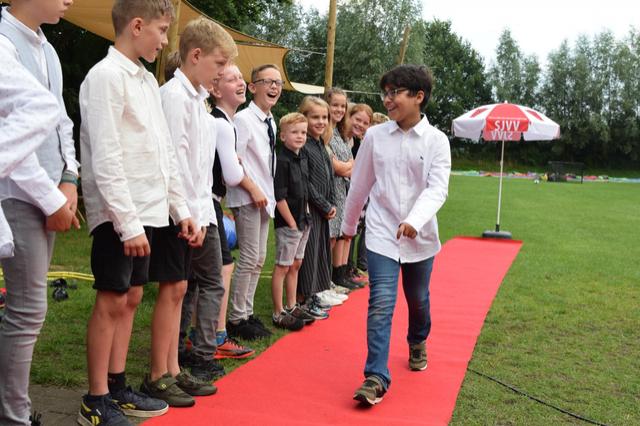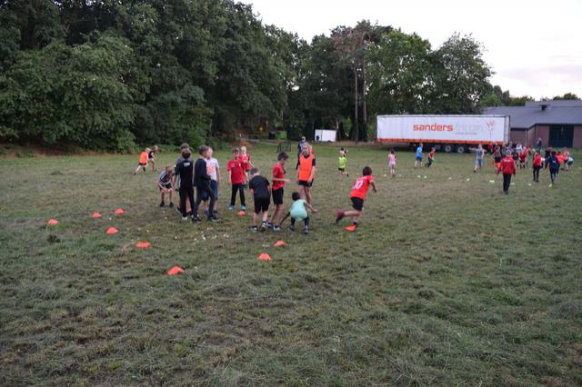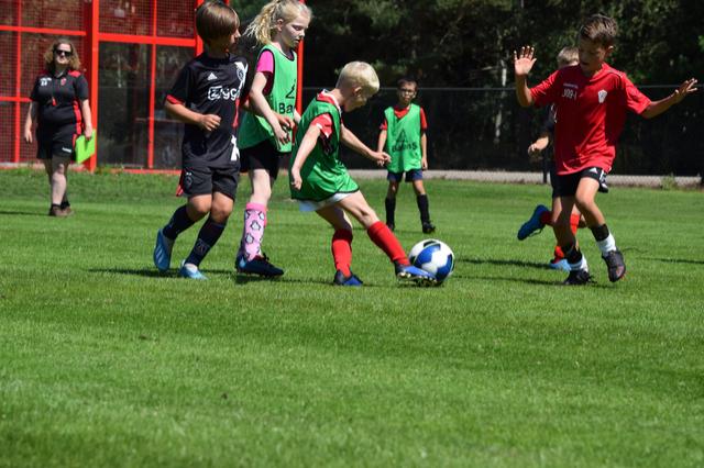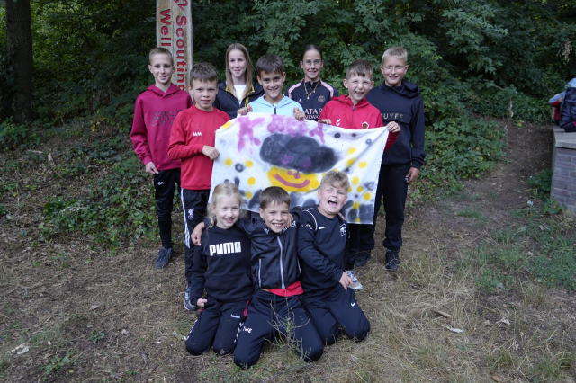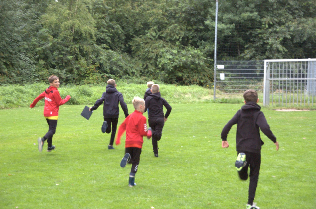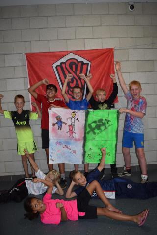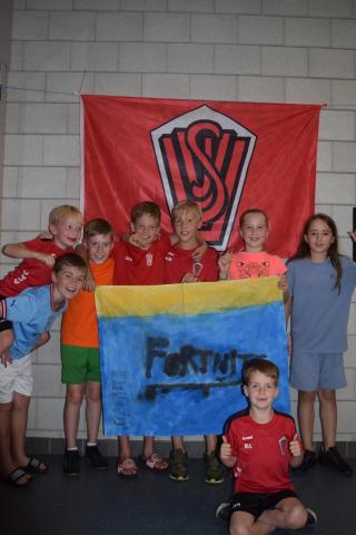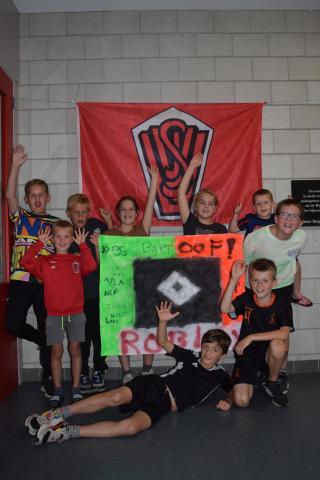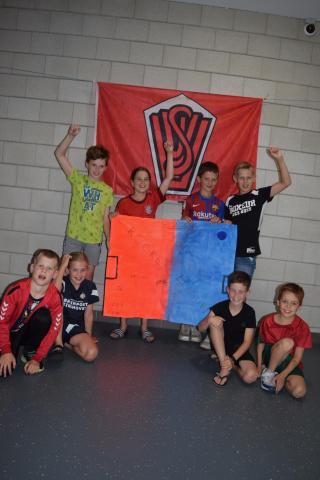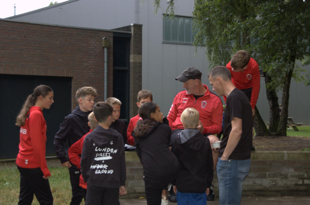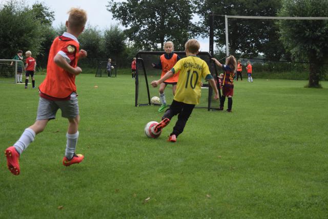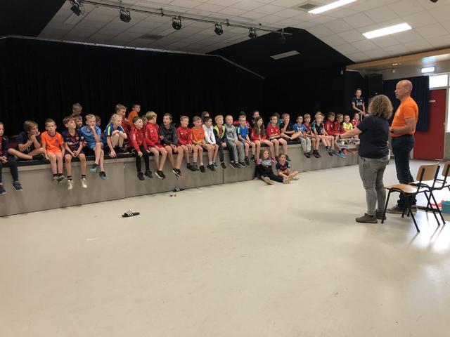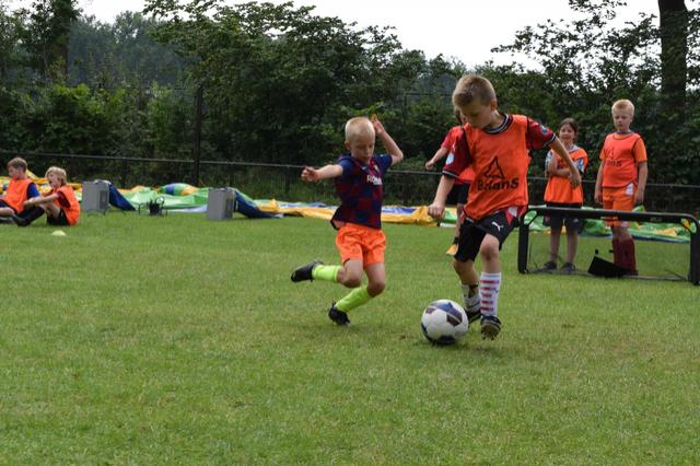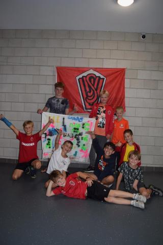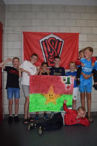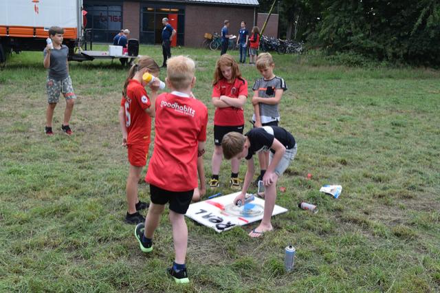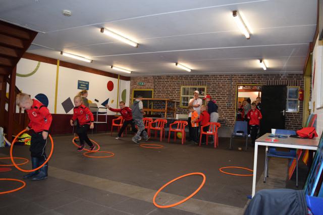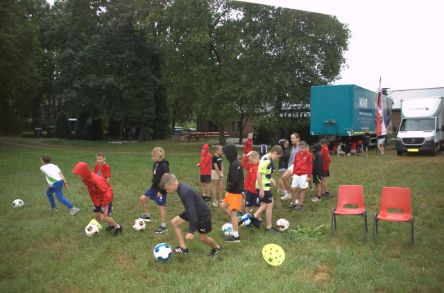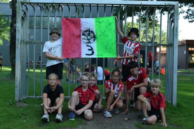 Tijdens het openingsspel werd er door de teams ook een groepsvlag gemaakt en hadden de kinderen een voetbalslalom waarna er een doelpunt gescoord diende te worden.