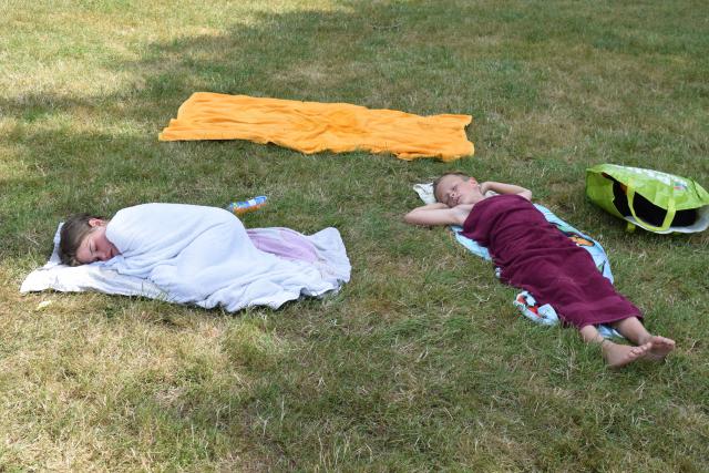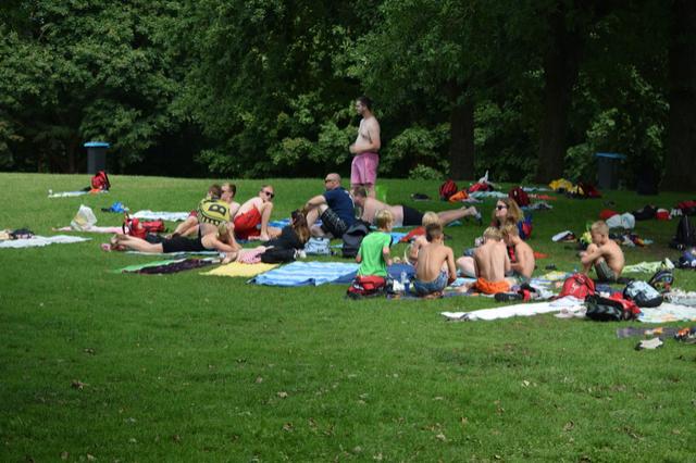 Vanochtend stonden we wat laat op, we hadden ons verslapen (vooral de leiding). Rond half 11 zaten we aan het ontbijt, want de bakker was te laat. Daarna mochten we snoep uitzoeken in de snoepwinkel. Toen iedereen snoep had, moesten we onze tas klaarmaken en gingen we naar de Tongelreep. Fabian, Bodhi, Scott en Teun kwamen iets later bij het zwemmen. We hebben heel lang gezwommen, in de zon gelegen, naar chickies gekeken en veel waarschuwingen gekregen. Toen moesten we rond kwart over zes uit het zwembad en omkleden. Toen reden we weer terug naar de boerderij in Gemert. Daar mochten we eerst even uitrusten en de tas uitpakken. Toen hebben we heerlijke Chinees van Mickael Du gegeten en Chinese rundvleessoep. En nu zijn we bezig (en bijna klaar) met het schrijven van de kampkrant.