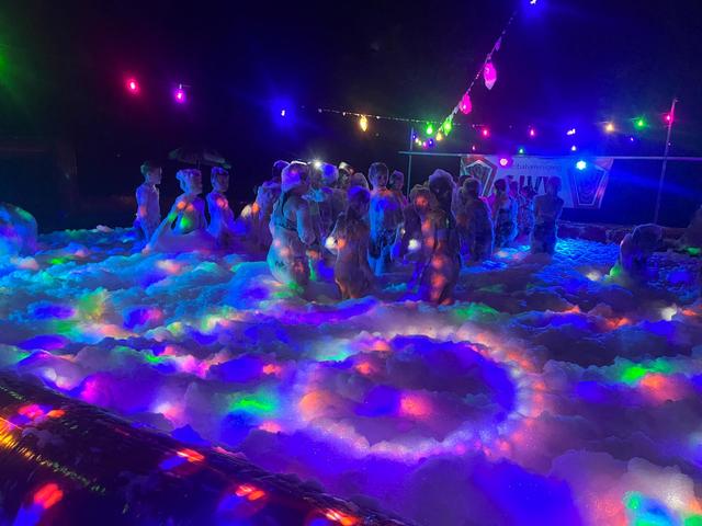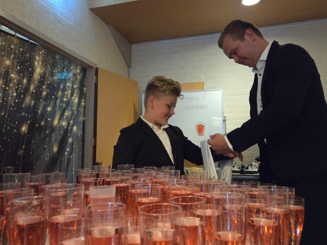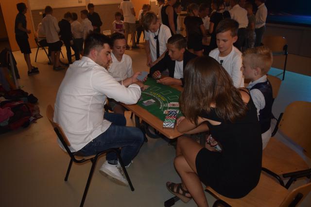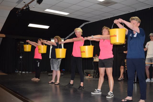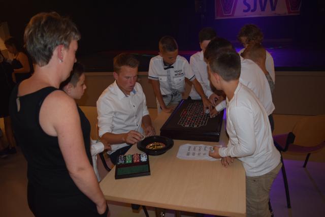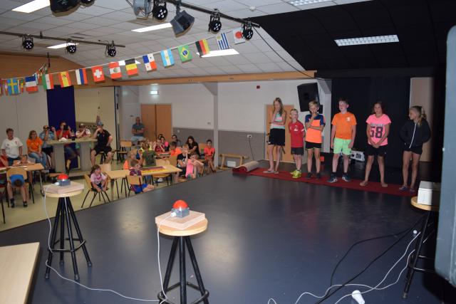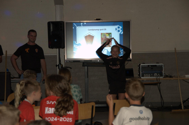 's avonds hadden we een interactieve quiz. De groepen werden spectaculair aangekondigd en hun groepsleider luidt ontvangen. De vragen rondes werden afgewisseld met opdrachten zoals: spekjes doorgeven met een rietje en een ballon laten knappen tussen twee spelers. Uiteindelijk waren de dropveters de beste op het onderdeel quiz.