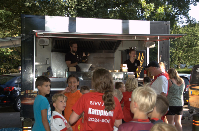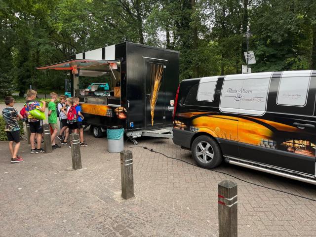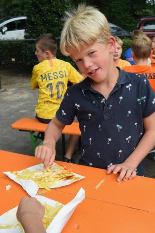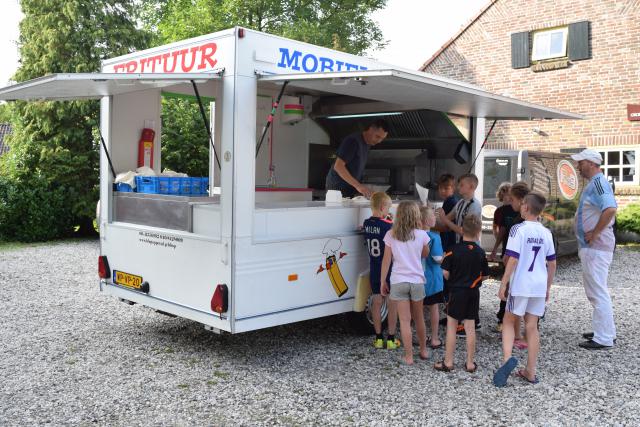 Bij terugkomst hadden we enorme honger, dat  kwam goed uit want Baroef had een frietwagen voor gereden en trakteerden iedereen op lekkere friet en snacks. Bedankt!!