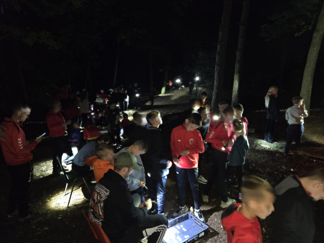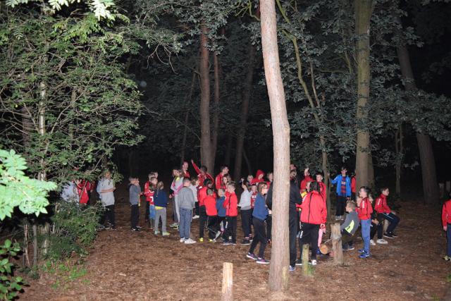 De eerste avond sloten we de dag af met het lichtjesspel in het bos. Het bos was volledig verlicht door ruim 800 breeklichtjes. De jongens en meiden moesten om de beurt een lichtstaafje uit het bos halen. Welke kleur was het meeste waard? Dit spel werd gewonnen door Spanje.