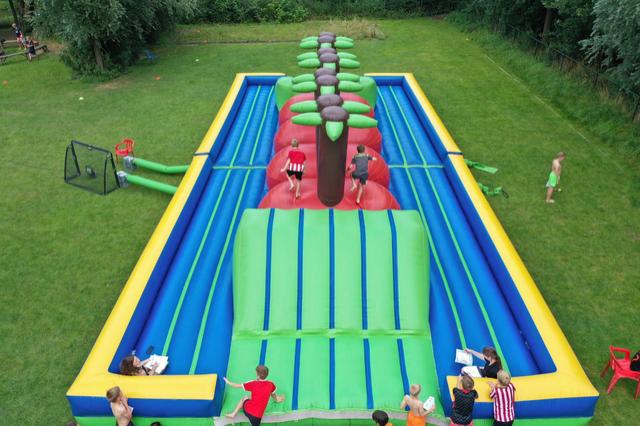 Na het ontbijt, werd de snoepwinkel geopend. En werden de luchtkussens alvast opgeblazen. Na de lunch was het dan daadwerkelijk tijd voor de zeskamp.