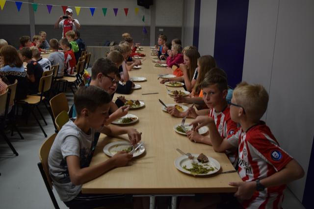 Natuurlijk zorgen we ervoor dat de kinderen lekker te eten krijgen. De eerste avond was er een buffet met heerlijke macaroni.