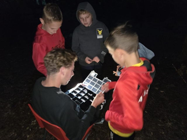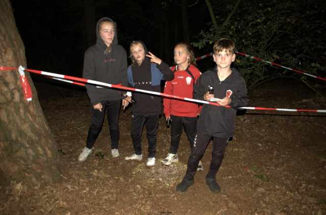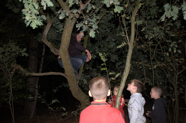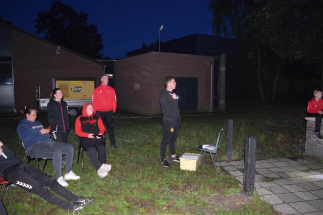 Toen het donker was speelden we het letterspel in het bos. Dit nieuwe spelonderdeel bedachte door onze nieuwe leiding Carlo, Rian en Juul viel erg in de smaak. De jongens/meiden konden bij 3 posten letters ophalen. Bij de dichtsbijzijnde post kregen ze willekeurige  letters. Bij de andere 2 posten konden de kinderen kiezen welke letter ze wilden, hierbij moesten ze wel opletten dat ze bij de rechter post de letters A tm L te halen waren en bij de linker M tm Z. Met de verzamelde letters moesten de kinderen de namen van de kampleiders maken. De naam Jan of Kim is dan zo gemaakt, Bastiaan of Priyantha is dan toch moeilijker. Uiteindelijk waren de Pinballs het beste.