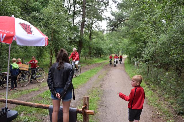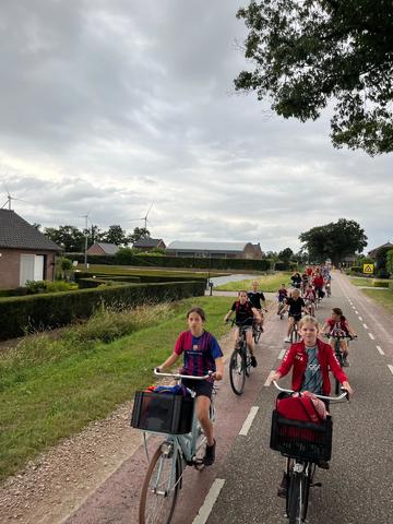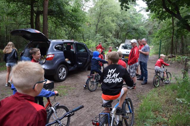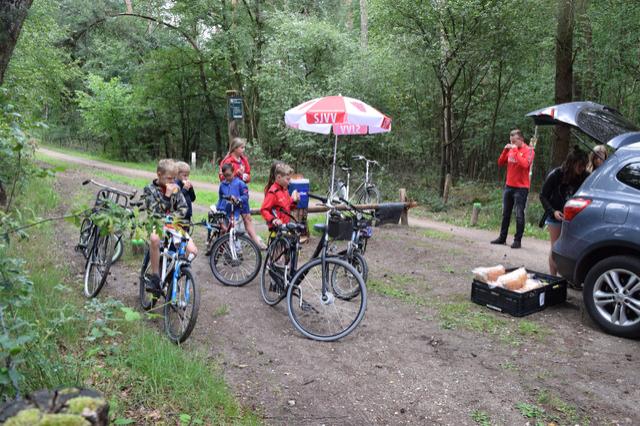 We kwamen om half 12 bij SJVV aan en we gingen om 12 uur eerst naar het zandbos. Daar gingen we een spel doen, klootschieten. Toen waren we eerste geworden. En toen fietsten we verder en toen vielen Fabian en Wout. En ook Kay z'n schoen viel uit. Daarna hadden we een fototocht in het centrum van Gemert. Weer waren we eerste. En toen gingen we naar de Coxse Boerderij. Eerst moesten we buiten spelen want we mochten nog niet naar binnen van de strenge leiding(Erwin).