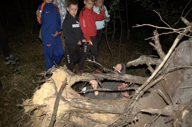 Maaandagavond speelden we het smokkelspel. De kinderen probeerden om zoveel mogelijk geld boven in het bos te brengen. Met dit geld konden ze waren kopen  om weer naar beneden te smokkelen. Maar let op!! in het bos liep douane rond en dat allemaal in het donker.