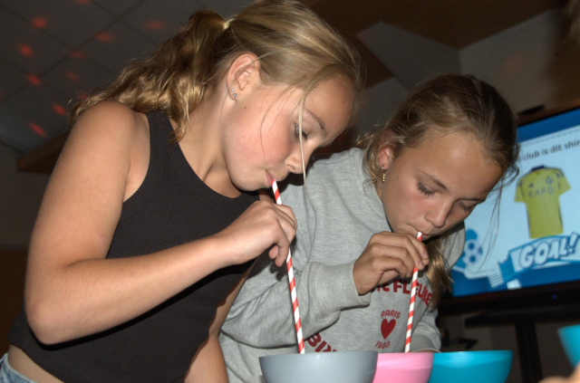 Tussendoor kunnen de kinderen zich prima vermaken met leuke spelletjes of lekkergezellig kletsen.