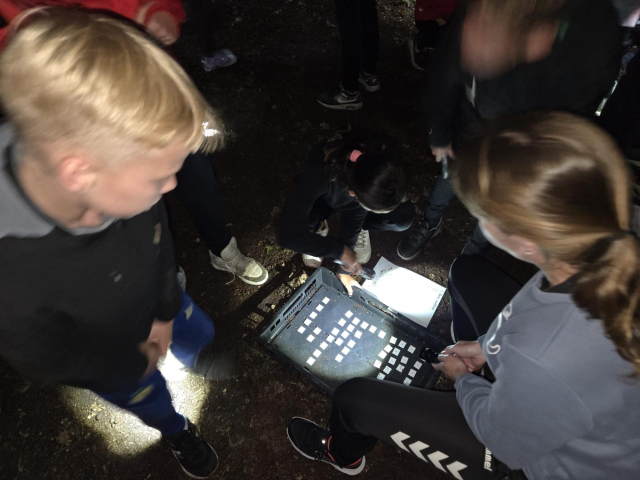 Dierengeluiden spel. Elk groepje kreeg een lijstje met daarop diverse dieren. Deze dieren moesten ze in deze volgorde proberen te vinden. Het zoeken werd makkelijk gemaakt door het geluid dat de beesten maakten.