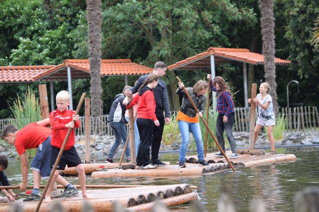 Daarna konden de kinderen lekker in kleine zelf gekozen groepjes zelfstandig rond door het park. Vooral de water attracties waren favoriet.  Tussendoor moesten ze niet vergeten om ook iets te komen eten van de bbq.